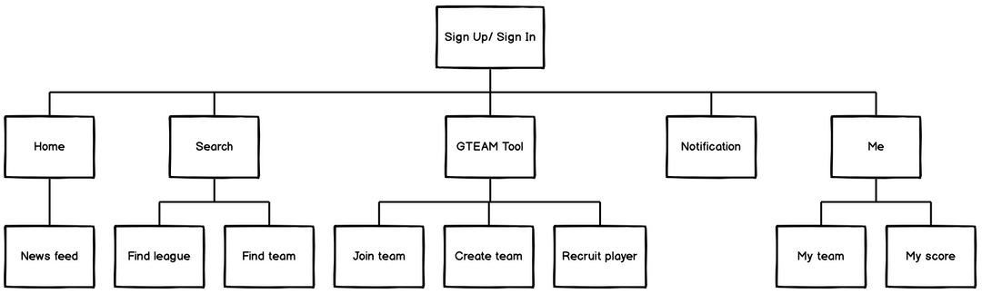 Players and fans, on the other hand, would need different tasks: the most 3 important tasks we grouped them into a section called "GTEAM Tool": join teams, create a team and recruit player (if he already had a team).