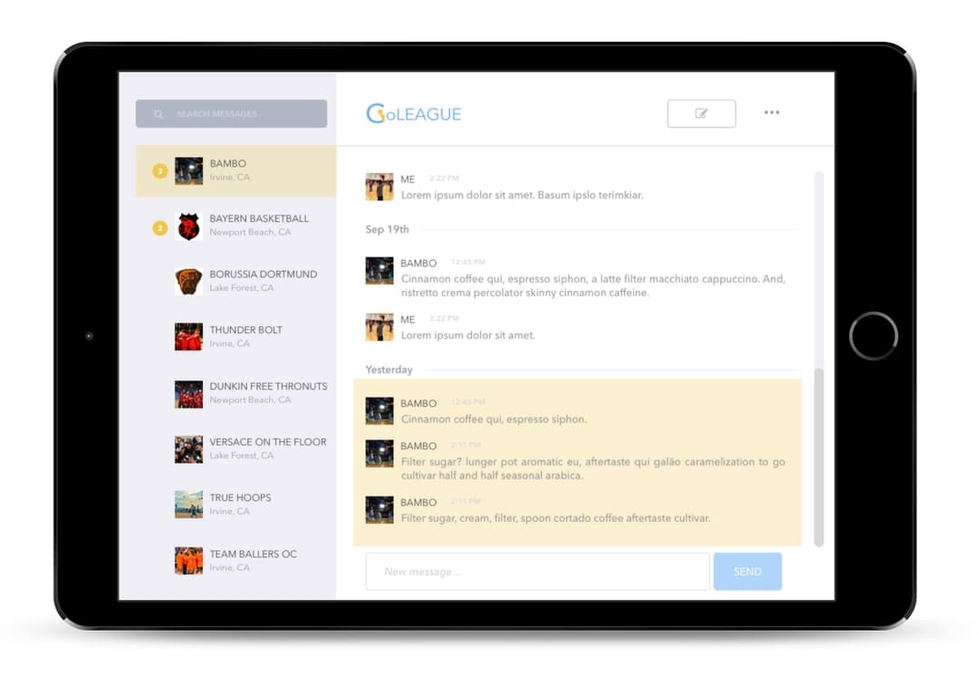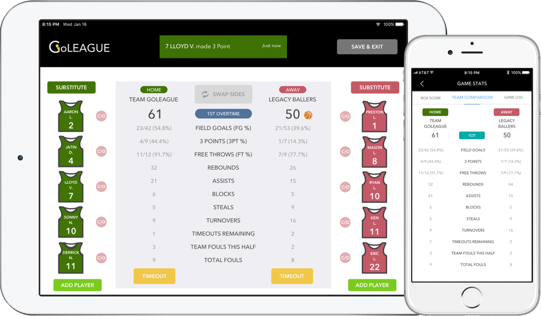 GoLEAGUE was born as a basketball management tablet app. It would allow basketball league owners to create their league account, add teams, communicate with members, and especially with its sister mobile app, the GTEAM app, would let member to see live scores during the game.