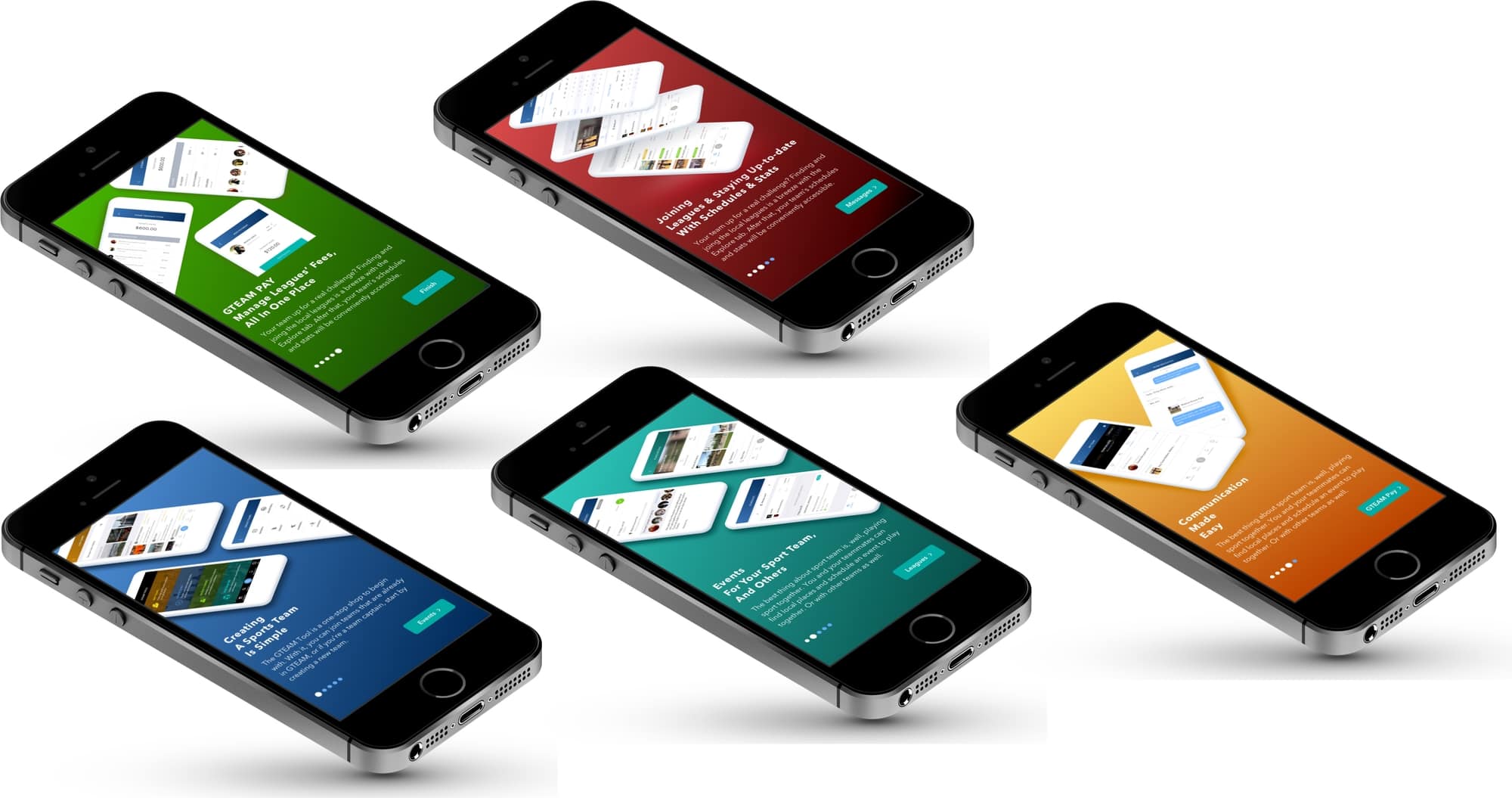The GTEAM app started to make more sense as we're building the GoLEAGUE app. While originally this app would not work without the GoLEAGUE app, we finally designed for this mobile app could work independently, even though it would be more powerful when connecting to the other app.