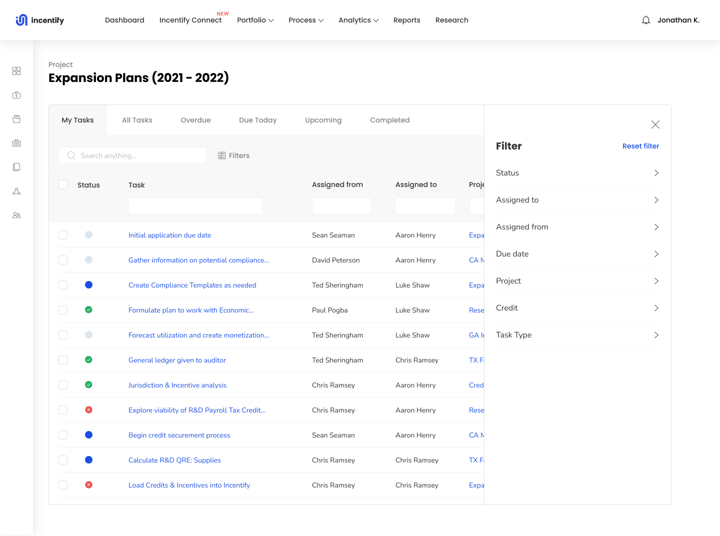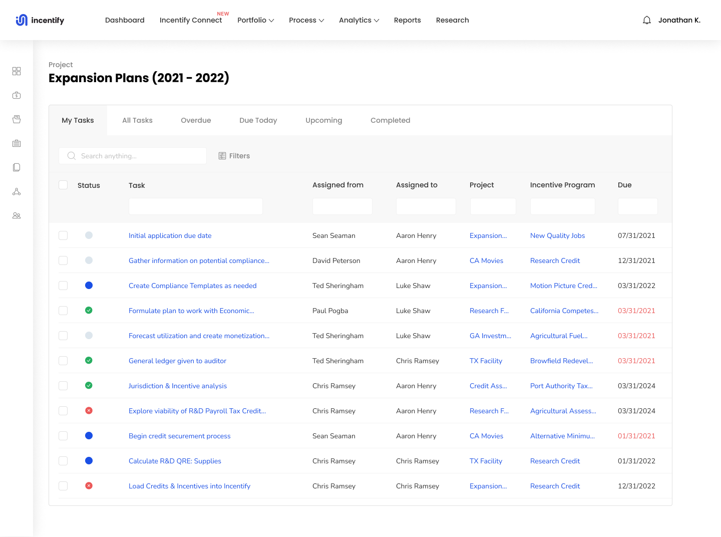 - Built-in table inside Incentify platform, where users can easily see all tasks at hand with filtering and sorting.