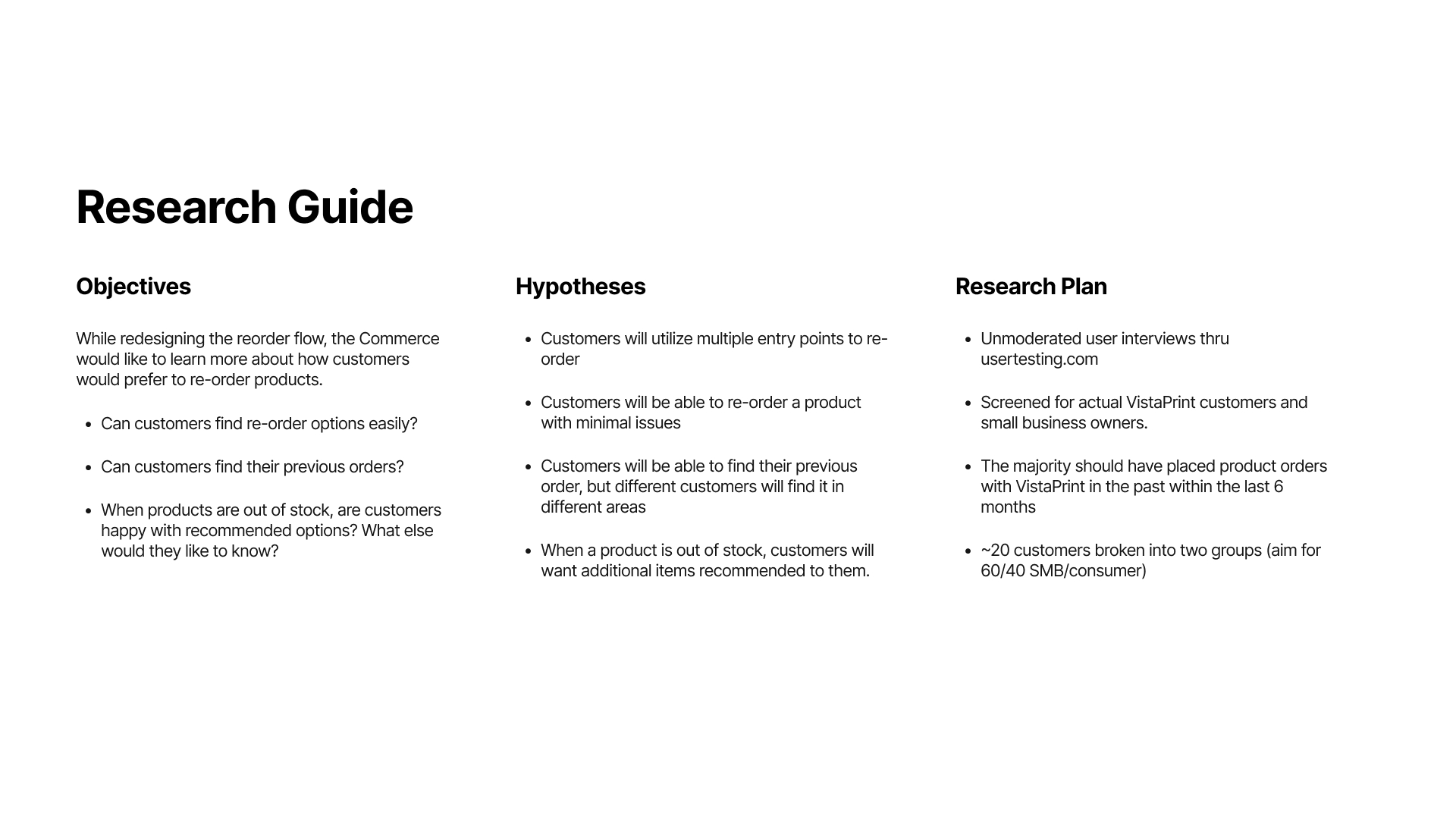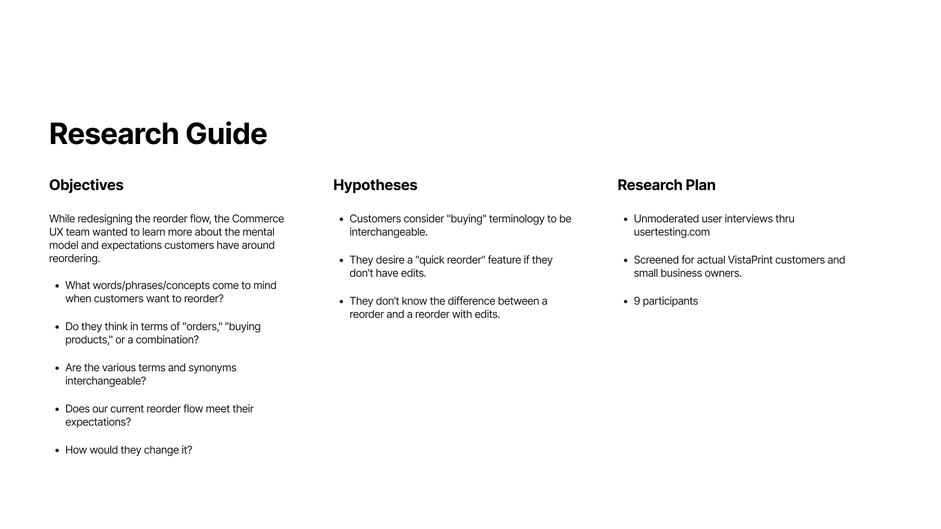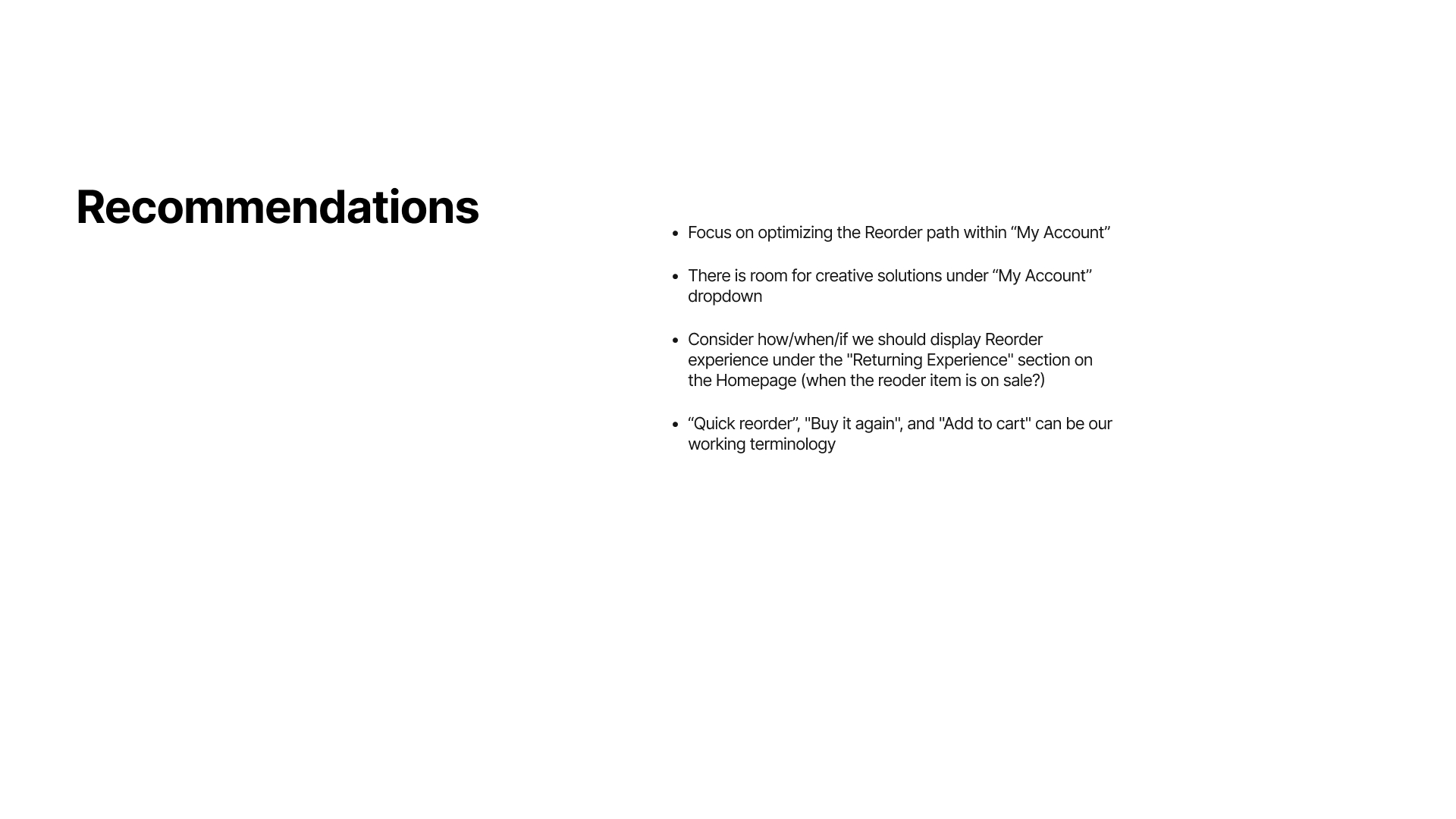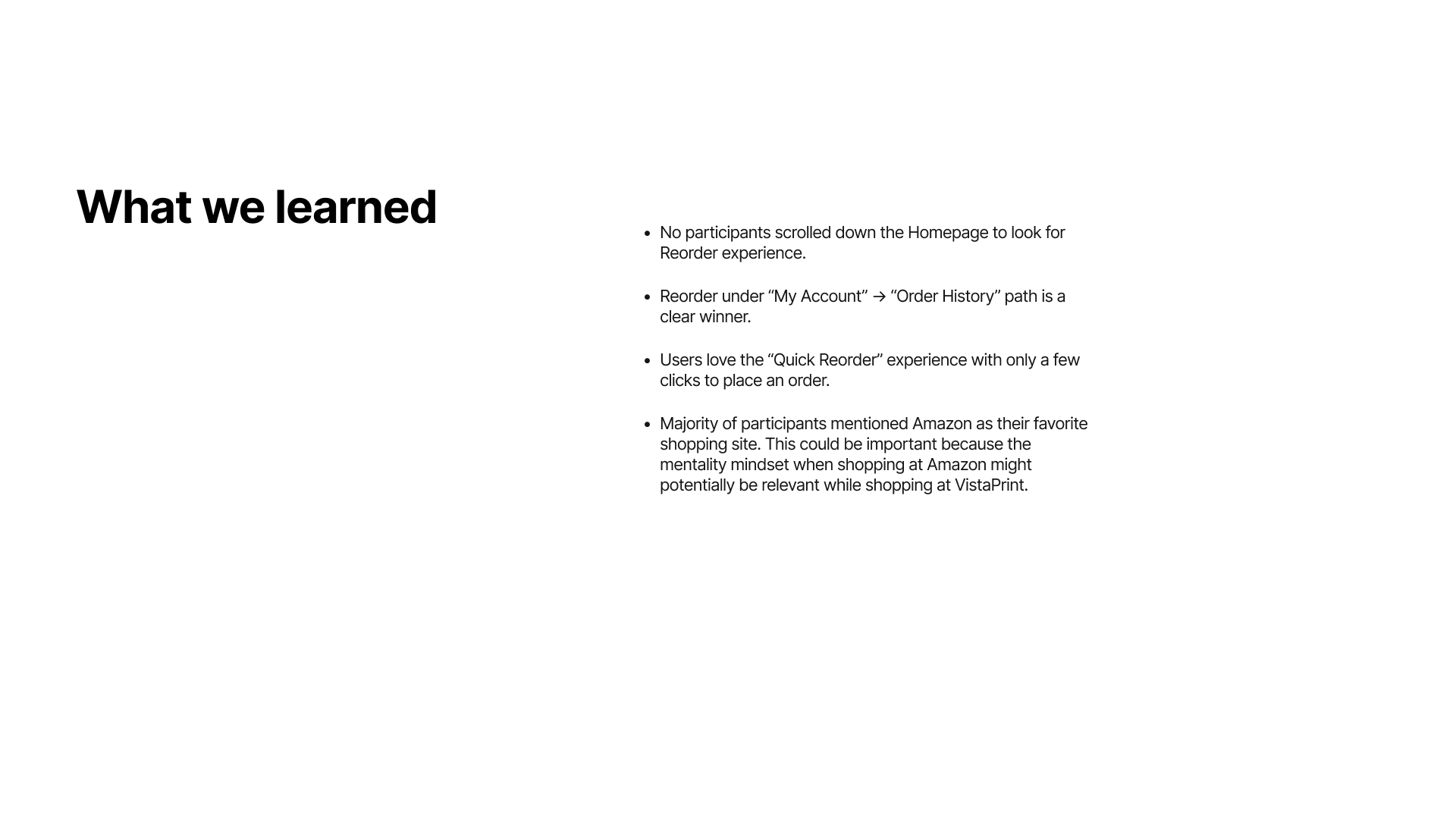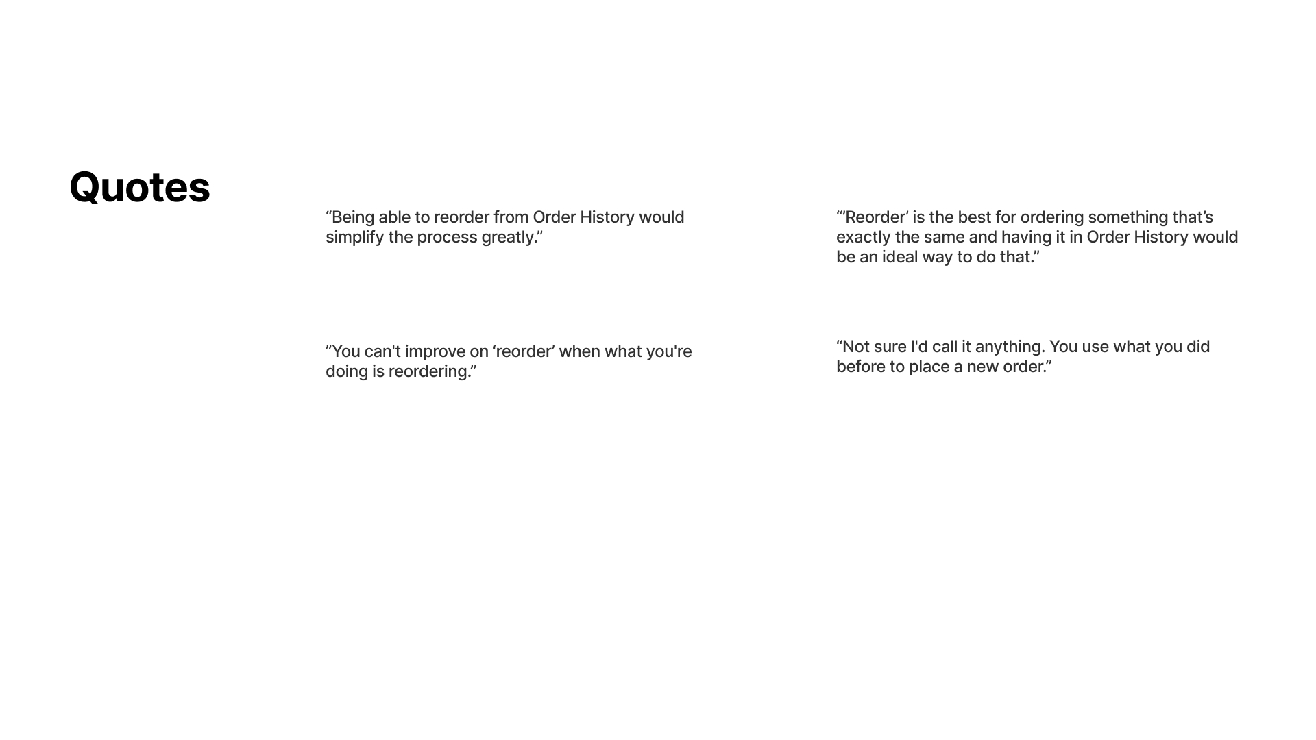 Our team is tasked with the objective to learn how users re-order, what their experience current looks like and how we can improve it to make the experience smoother, easier.